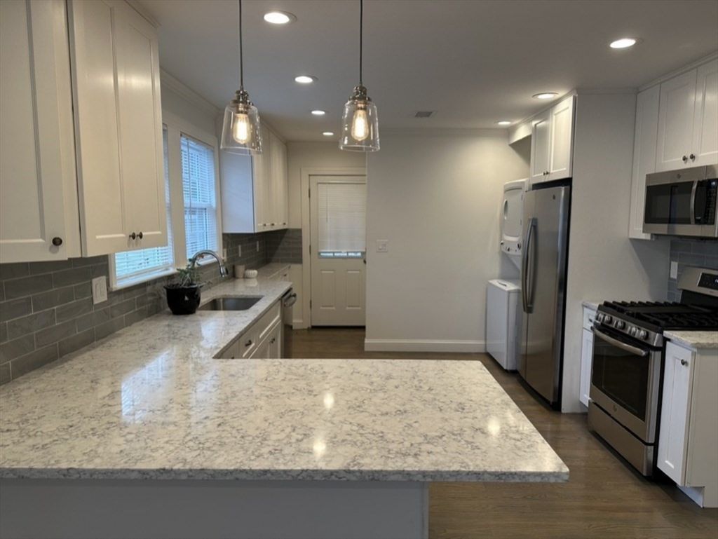 Beautifully updated Townhouse with three bedrooms plus office and two full bathrooms on multiple levels of living. Great curb appeal, in-Unit Washer/Dryer, hardwood floors, 2 driveway parking spaces and a private balcony! Great Belmont location off of Belmont Street on the Cambridge line! Plenty of nearby amenities and a short distance to the #73 bus into Harvard Square and Boston. Central Air, gas heat, recessed lights throughout, s/s appliances, quartz counters and a huge master bedroom with en-suite bath on the top floor! Available 7/1!